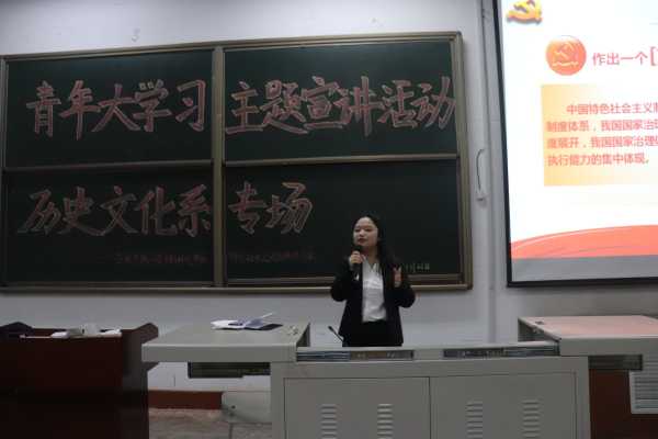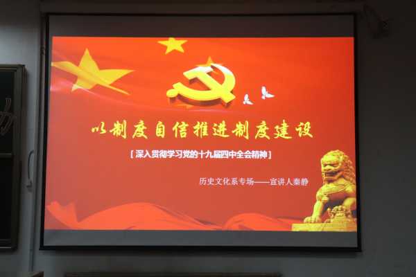 晚七点三十分左右宣讲活动正式开始活动第一个主题是以制度自信推动制度建设宣讲人秦静为我们普及党的十九届四中全会精神并指出我们要有坚定的制度自信以及作为中国新青年我们也应该熟知党为我国复兴设定的总体目标没错只有这样我们才能坚持和完善好党所制定的十三个制度实现梦贡献力量活动第二主题为风雨历程七十年宣讲人为刘青刘青同学先为我们讲述了七十年奋斗征程的代表——邓稼先这位伟大的祖国建设者奉命于危难之中”,抛弃名利与浮华的奢侈生活断然与其他科学建设者承担起了复兴中华这一艰巨的任务在这一过程中邓稼先老先生可谓是鞠躬尽瘁死而后已即使面对的是威胁生命健康的危险他也在所不惜我们可以说他是最热诚的爱国人更可以说他是最伟大的建设者他留下的邓稼先精神永远是我们当代新青年所需要不断学习的精神财富刘青同学也鼓励我们好好学习为祖国做更多的事情最后康佳乐及学习会干事介绍习近平新时代中国特色社会主义思想学习会并强调要关注和学习实事政治提升青年责任意识