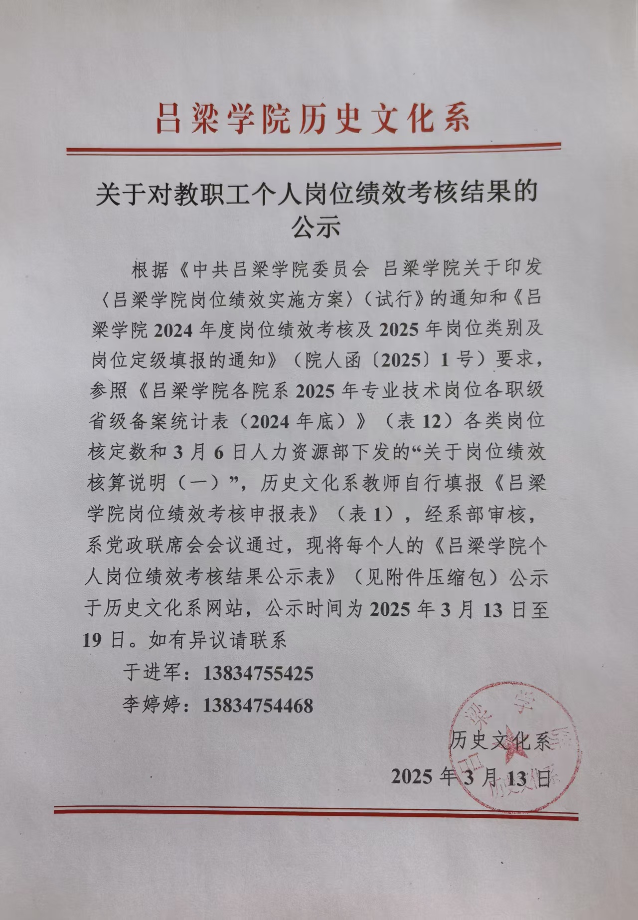 太阳成集团tyc234cc关于对教职工个人岗位绩效考核结果的公示