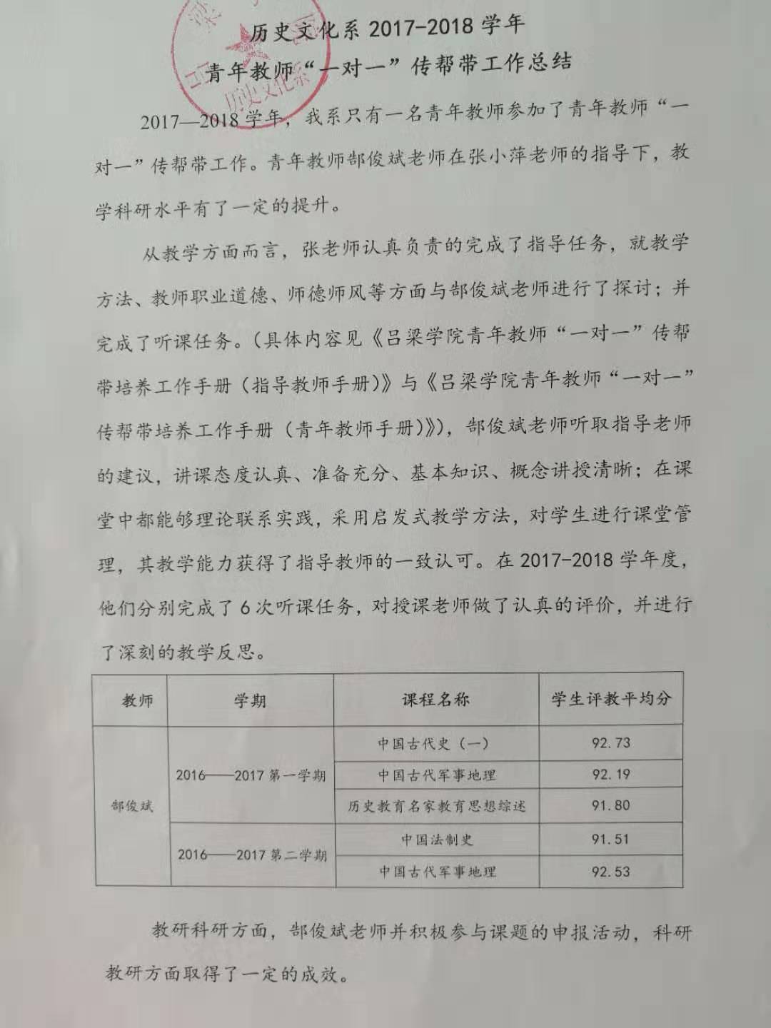 2017-2018学年青年教师“一对一”传帮带工作总结