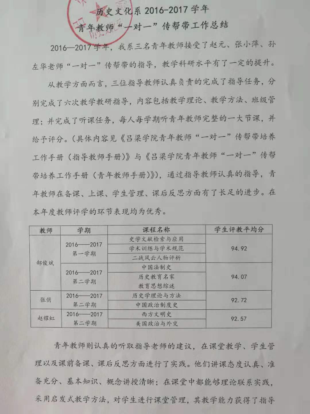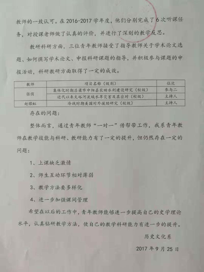 2016-2017学年青年教师“一对一”传帮带工作总结