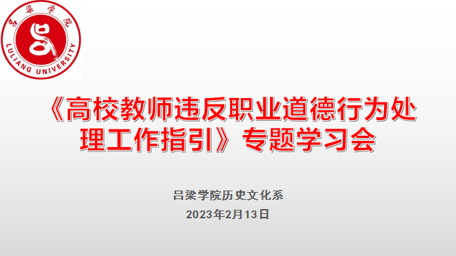 为深入贯彻落实《高校教师违反职业道德行为处理工作指引》精神,进一步提升我系教师的职业素养,加强我系教师队伍师德师风建设,弘扬新时代高校教师道德风尚。于2023年2月13日上午,太阳成集团tyc234cc班子成员和教师在系党总支书记于进军带领下在教学楼三区会议室学习了山西省教育厅下发的《高校教师违反职业道德行为处理工作指引》(晋教师〔2022〕10 号)。
