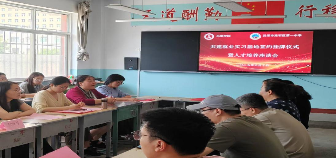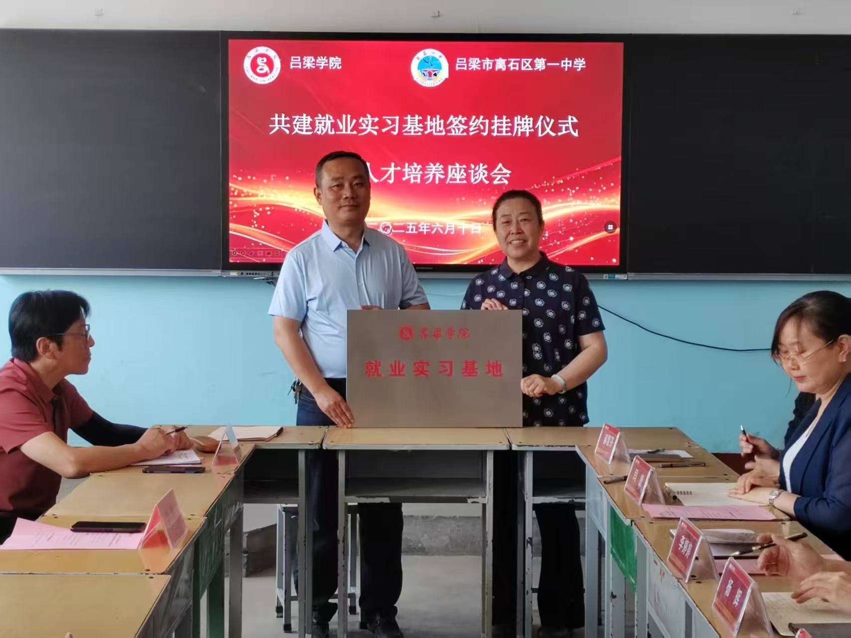 2025年6月10日上午,太阳集团太阳成集团tyc234cc与吕梁市离石区第一中学共建就业实习基地签约挂牌仪式暨人才培养座谈会在离石一中会议室顺利举行。太阳成集团tyc234cc主任李婷婷、离石一中校长程宇锋及双方教师代表、实习生共同参与活动,会议由离石一中石艳霞老师主持。
