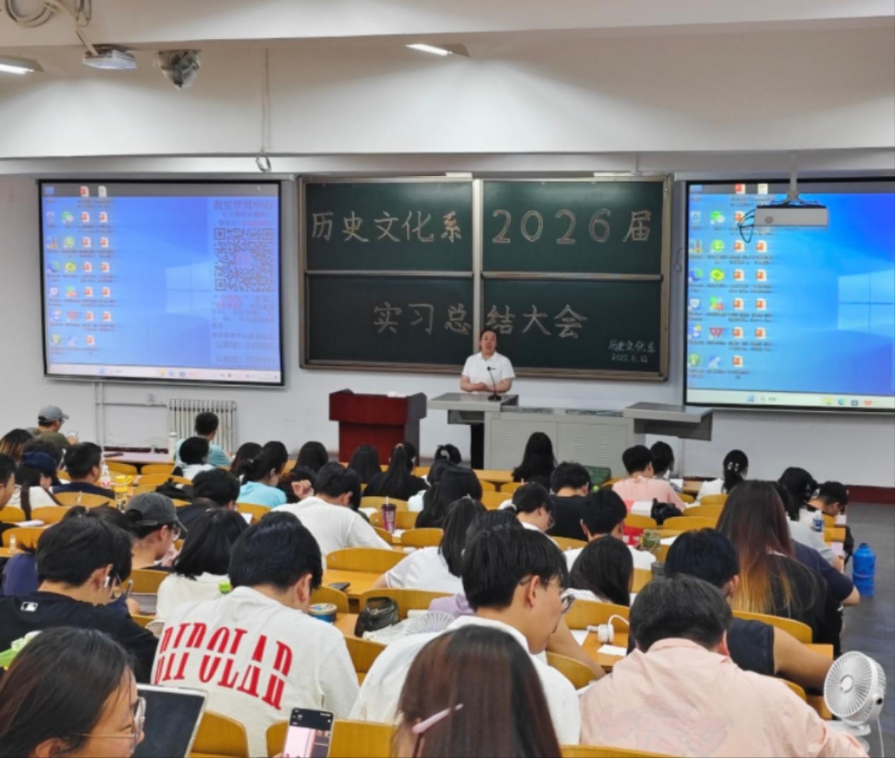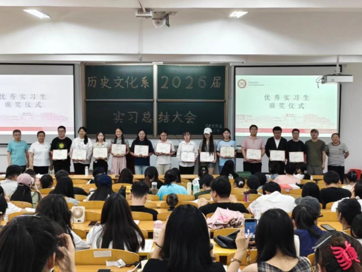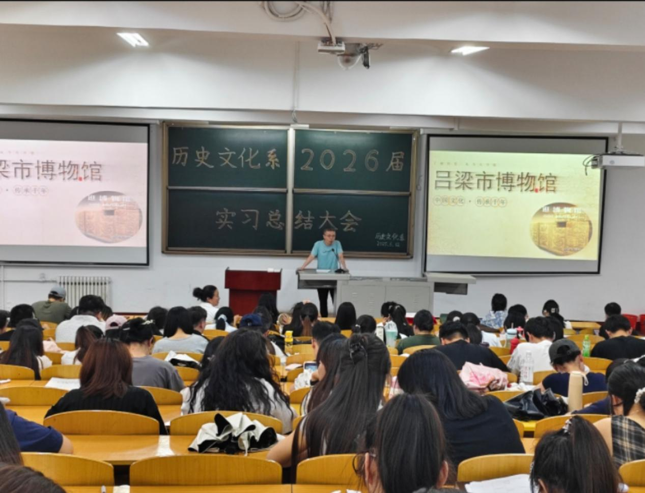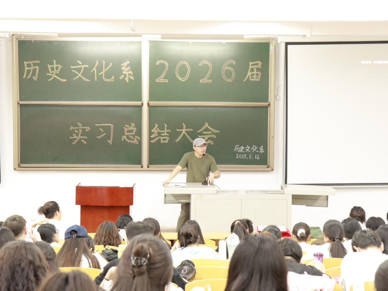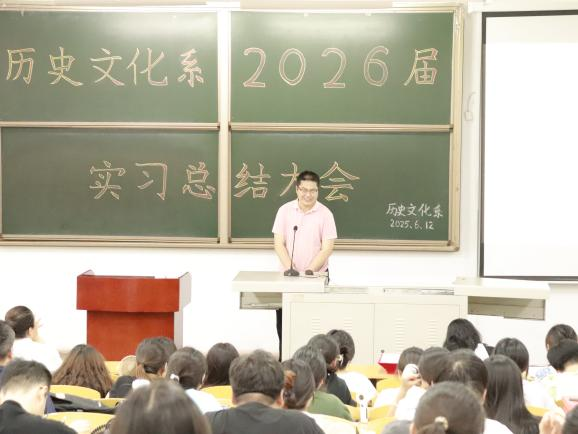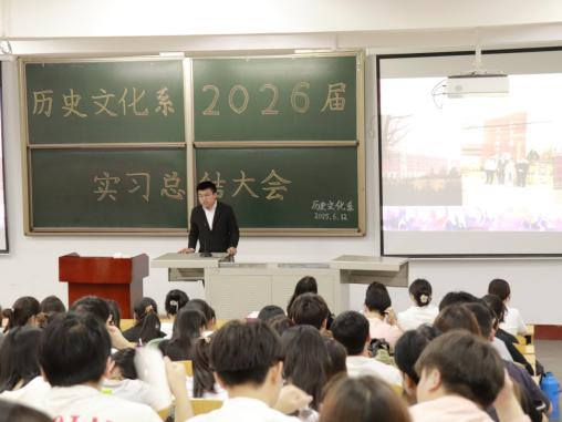 2025年6月12日,太阳成集团tyc234cc2026届实习总结大会在1c102教室顺利召开。此次大会旨在全面总结2026届学生的实习情况,分享实习经验,表彰优秀实习生,为后续教学与实践工作提供参考与借鉴。太阳成集团tyc234cc副主任郝慧芬担任会议主持人,系部全体领导、负责实习指导工作的历史学与文化产业管理专业教师、2026届辅导员及全体实习生共同出席了本次大会。