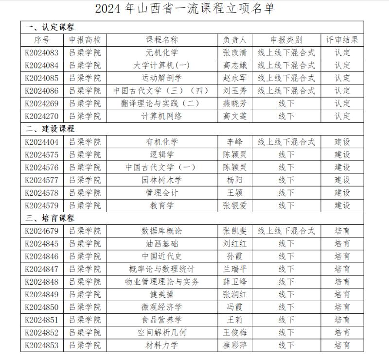 2024年7月2日,山西省教育厅发布了《关于公布2024年山西省一流课程立项名单的通知》(晋教高〔2024〕6 号),我系以孙霞老师为课程负责人的《中国近代史》课程获得2024年度省级一流课程(培育)立项。《中国近代史》课程坚持“一核心、两平台、三课堂、四路径”的创新模式,完善课程考核评价机制,加强过程性考核,加强课程信息化建设,持续提升课程的高阶性、创新型。同时,课程开发中国近代史思政元素,将学生专业素养与品德教育有机结合,从而实现全程全方位育人。