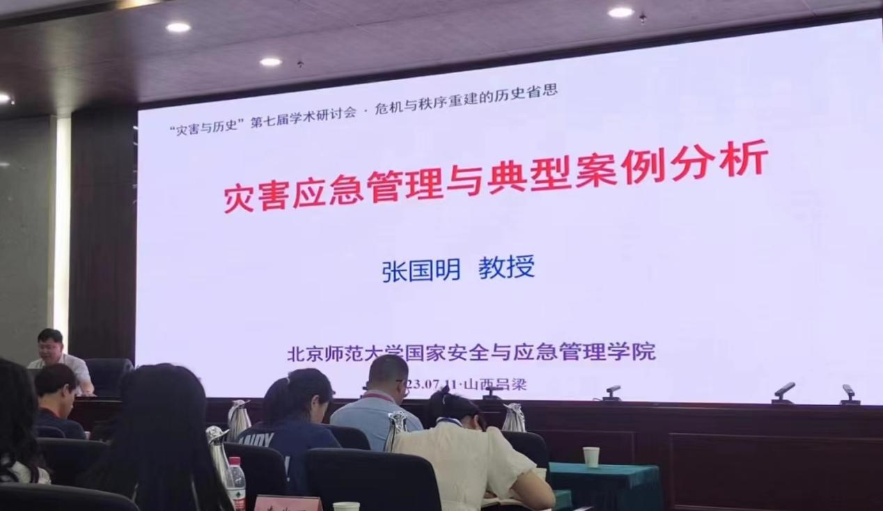 上午九时,由北京师范大学国家安全与应急管理学院张国明教授进行首场专题讲座,讲授题目为《灾害应急管理与典型案例分析》(见图1),向晋卫教授担任本场讲座的主持人。张国明教授“灾害应急管理概念的形成、历史渊源”,“当代国内外灾害现状”“应急管理体系建设结构”等角度,结合三大典型案例介绍了应急管理建设对于灾害应对的重要性。