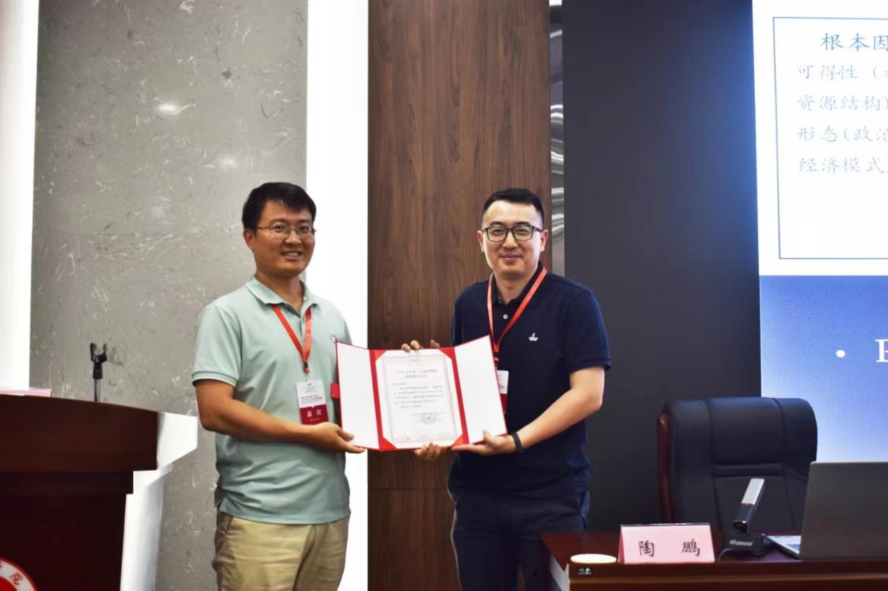 讲座结束后,主持人韩祥向陶鹏教授颁发《特邀报告证书》。
