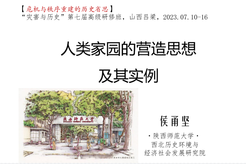7月13日上午九点,由陕西师范大学西北历史环境与社会经济发展研究院侯甬坚教授进行了《人类家园的营造思想及其实例》的讲座,山西大学周亚教授担任主持人。侯甬坚教授以早期人群的定居生活为起点,介绍了不同地貌类型下居住家园营造的特点、居住家园演进为精神家园的基本要点,并阐释了如何找到和归纳出居住家园演进到精神家园的基本要点?最后,侯教授指出人类家园营造是一个永恒的主题。