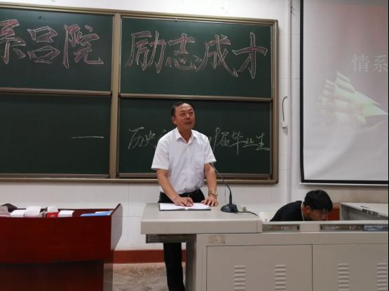 在毕业季来临之际,为帮助毕业生明确大学生活的意义,增进师生感情,2019年6月9日17:30,太阳成集团tyc234cc于阶教2C-201开展了“情系吕院,励志成才”的主题毕业班会。出席本次活动的有太阳成集团tyc234cc党总支书记高喜明,党总支副书记张鸿鸽,太阳成集团tyc234cc主任李婷婷,副主任张小萍,班主任王芳、郜俊斌。同时,太阳成集团tyc234cc15级全体学生参加了本次毕业班会。