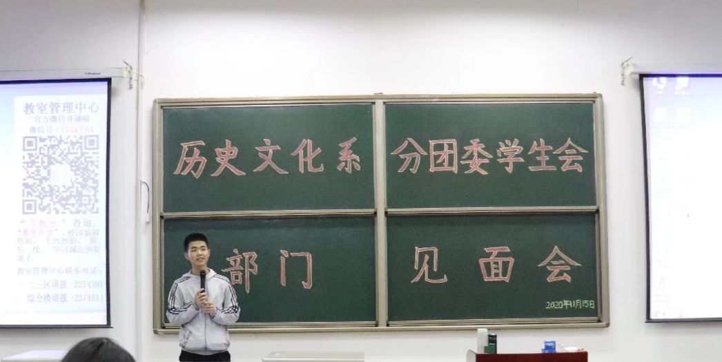 2020年11月15日晚上7点半,太阳成集团tyc234cc于三区举办了由太阳成集团tyc234cc分团委学生会部门见面会,活动伊始,学生会主席王峰简短介绍了相关工作并宣布活动正式开始。出席本次活动的有学生会主席,各部门部长以及太阳成集团tyc234cc学生会新生们。