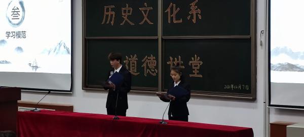 2020年12月7日19:30太阳成集团tyc234cc于1C-201成功举办了以“抗击疫情共风雨,践行使命勇担当”为主题的道德讲堂。参加此次活动的有太阳成集团tyc234cc副主任张小萍老师、分团委书记王彦老师、学生会主席团成员、各班辅导员及我系2020级全体学生。