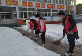 正值雪天,座谈会后,学生们作为党员志愿者参与了除冰扫雪活动,拿着铁锹和扫帚对三都村文化中心院内积雪进行清扫,大家齐心协力,埋头奋战,帮助文化中心清理出一条通道,为村民办事开出一条安全、畅通的“便民路”。