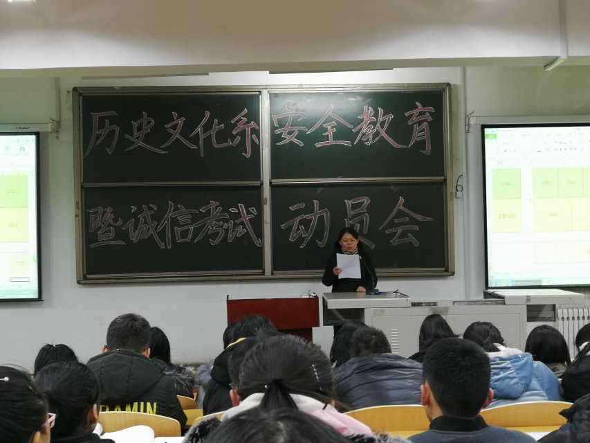 随后,为提高同学们对诚信考试的重视,更好的迎接本科评估的到来,张鸿鸽副书记指出了作弊的危害,强调了作弊不仅是对自身能力的否定和蔑视,更是对我系良好风气的亵渎,希望同学在诚信考试的基础上逐渐完善自我,在这次考试中做到对自己负责,对他人负责。