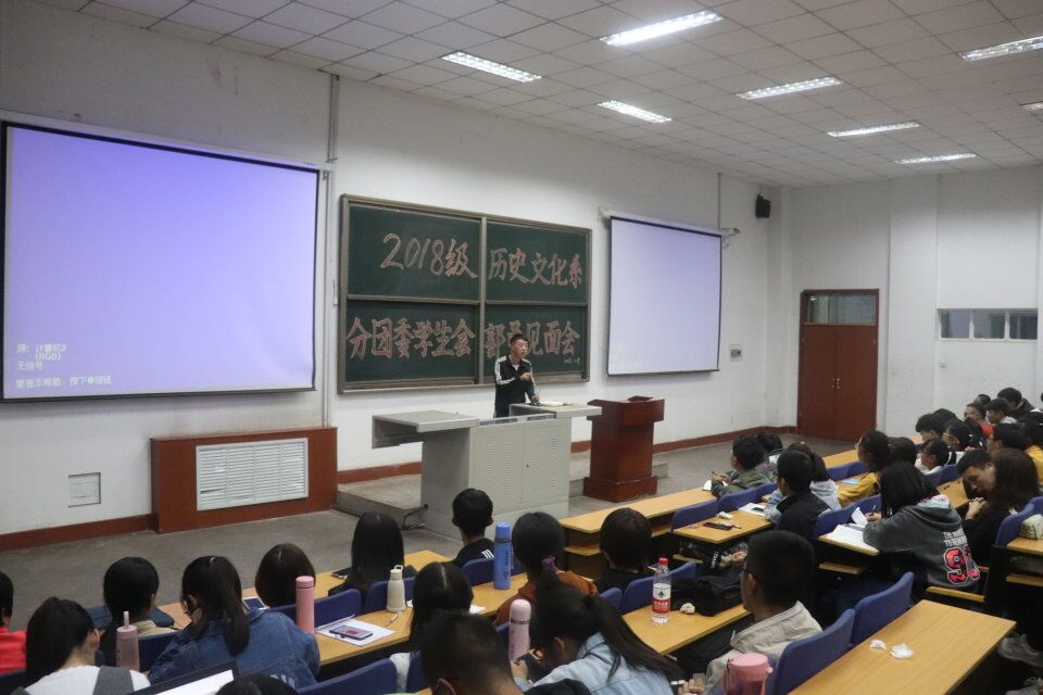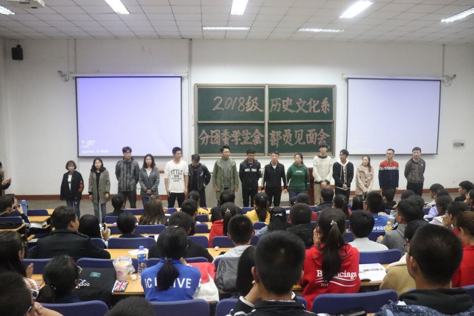 2018年10月15日19:30,太阳集团太阳成集团tyc234cc于阶教2C-202举行了2018级太阳成集团tyc234cc分团委学生会部员见面会。本次见面会由分团委学生会副主席陈海波主持,出席本次见面会的有太阳成集团tyc234cc分团委学生会副书记曹昱,学生会主席靳海利,副主席赵华茹、王志强、陈海波,以及各部部长和副部长。参加本次会议的有学生会全体新干事。