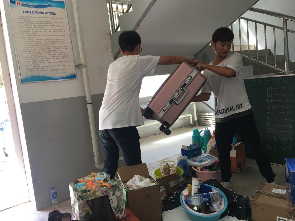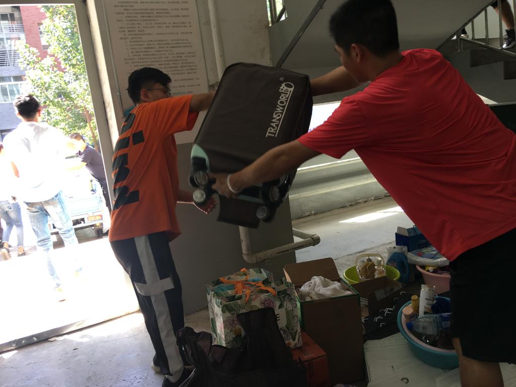 各班班委特地安排车为学生搬运东西。各班同学积极遵守搬运时间表,各宿舍有序将已打包好的东西拿到楼下,错开时间,一个宿舍搬完,再由另一个宿舍上车,避免了在搬运过程中杂乱无章。整个搬运过程,党员全程监督辅助,并且所有男生顶着太阳全部来到文华10号楼和2号楼帮忙,帮助女同学们拿东西或者看包裹。除此之外,许多自己搬完的同学主动帮助其他没有搬完的同学,自觉的搭把手,同学的帮助友爱在今天得到了完美体现。