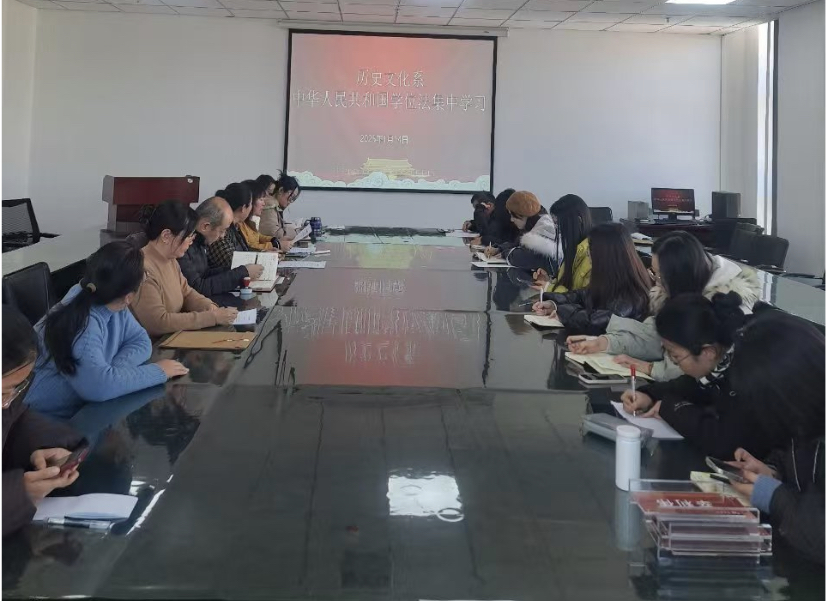 为贯彻落实国家教育政策,有效推进《中华人民共和国学位法》的学习宣传与实施工作,加深太阳成集团tyc234cc全体教师对学位制度的认知与学习,确保学位授予质量,太阳成集团tyc234cc于1月14日在系会议室618召开专题学习会议,本系党总支书记于进军、系主任李婷婷、副书记闫婕、副主任张发青,以及全体专任教师、辅导员共同参与。