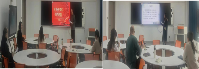 在教研室主任说教研活动中,贾亿宝老师详解“红色文化浸润计划”,通过策划革命文化学术论坛、开发吕梁精神实践课程,推动红色资源向教学要素转化。同步建议设立“文化周”常态化机制,运用沉浸式教学模式培育学生文化认同感,强调“教育应实现知识传授与价值塑造的有机统一”。王彦提出创新打造“红色叙事实践平台”“文旅服务实训项目”等教学载体,将三全育人理念贯穿课程设计全过程。通过建立教学质量动态监测机制,确保课程思政建设取得实质成效等。