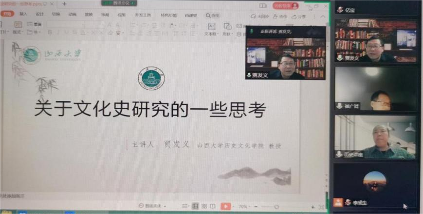 2022年10月28日,太阳成集团tyc234cc邀请山西大学历史文化学院教授、博士生导师贾发义教授做了《关于文化史研究的一些思考》讲座。讲座由系主任李婷婷主持,全系教师和部分学生共200余人参加。