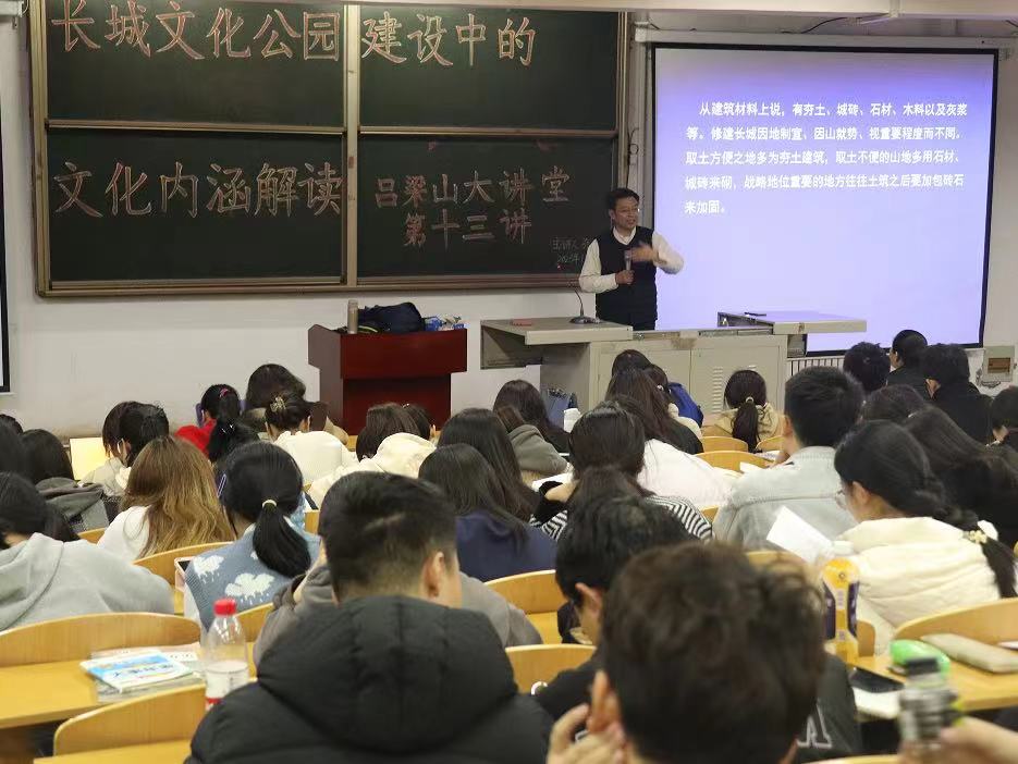 在吕梁山大讲堂第十三场学术讲座中,张世满教授围绕“长城文化公园建设中的文化内涵解读”这一主题,从建筑文化、历史记忆、战争与和平(民族斗争与民族融合)、经贸交流、长城古城古堡、长城村落与长城人家、长城文学七个方面进行了深入解读。张教授的讲座图文并茂,生动形象,既有深度又有高度,其丰富的阅历和知识使在座的老师和同学受益匪浅。讲座结束后,张教授与我系师生开展了答疑互动,反响良好。本次讲座在热烈的掌声中圆满结束。