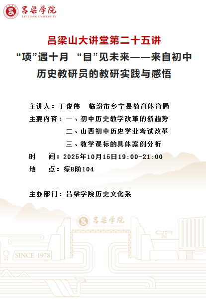 吕梁山大讲堂第二十五讲通知:“项”遇十月 “目”见未来——来自初中历史教研员的教研实践与感悟